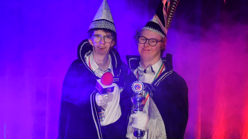 Luca Cup en Eef Keijsers gaan tijdens de carnaval voorop bij Disco 't Trefpunt. Zij zijn het 39e pri...