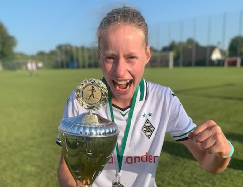 Samen met de Limburgse Lotte Pier en de Mila Schlechtriem uit de KNVB-meiden selectie timmert de 12-jarige Melderslose nu bij Borussia MGB aan de weg.