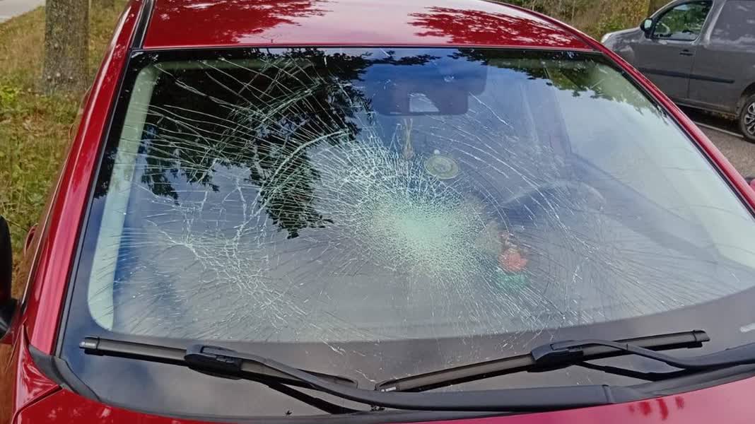 De auto waar de reebok terecht kwam raakte flink beschadigd Dierenambulance Brabant Noord-Oost