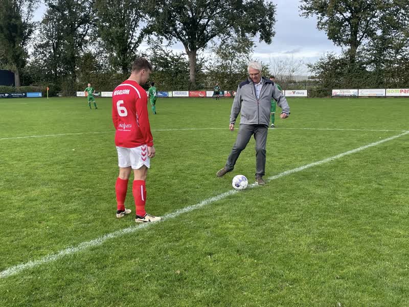 Voor aanvang van de wedstrijd werd de aftrap verricht door oud-voorzitter en erelid Wim Keijsers, die onlangs werd gehuldigd voor 60 jaar lidmaatschap van VV Hegelsom.