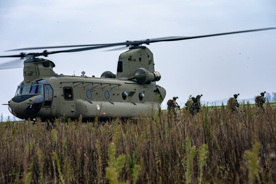 Op de bovengenoemde datum trainen de helikoptercrews van twee Chinook transporthelikopters en twee Apache gevechtshelikopters in samenwerking met zo’n 125 militairen van 11 Luchtmobiele Brigade in een fictief scenario.