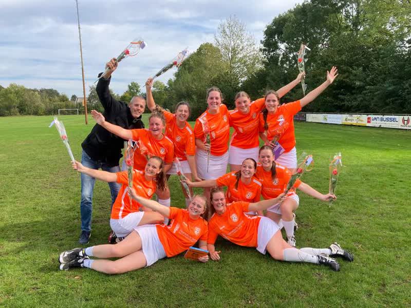 De korfbalsters van senioren 1 hebben op zondag 6 oktober na een spannende wedstrijd het kampioenschap in de veldcompetitie binnengehaald.