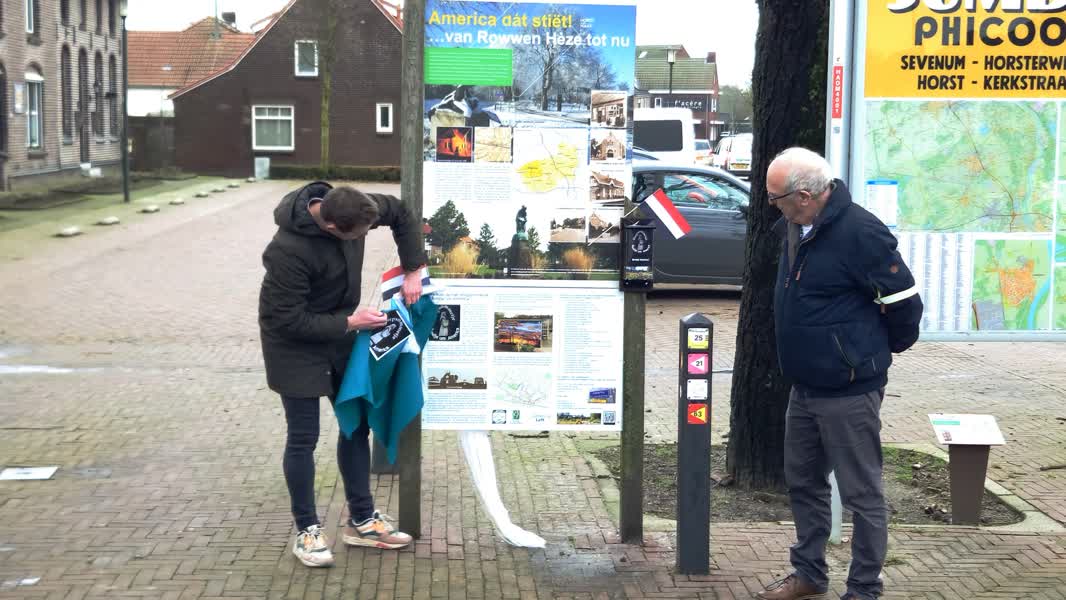 Onder een stralende winterzon werden dorpsbewoners en genodigden welkom geheten door Hay Mulders, voorzitter van Werkgroep Oud America, die samen met dorpsondersteuners Ellen Jacobs, Mariet Roelofs en kunstenares Petra Noordijk verantwoordelijk is voor de totstandkoming van dit unieke project.