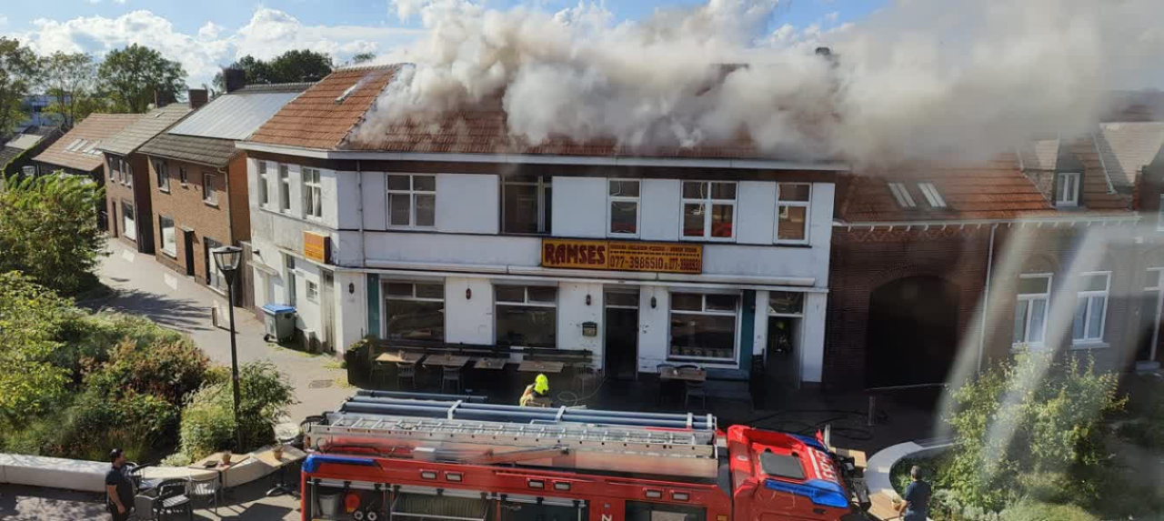 Bijna precies een jaar geleden, op 18 september 2023, sloegen de vlammen uit het dak van de pizzeria. Omroep Horst aan de Maas was erbij en maakte het onderstaande filmpje.