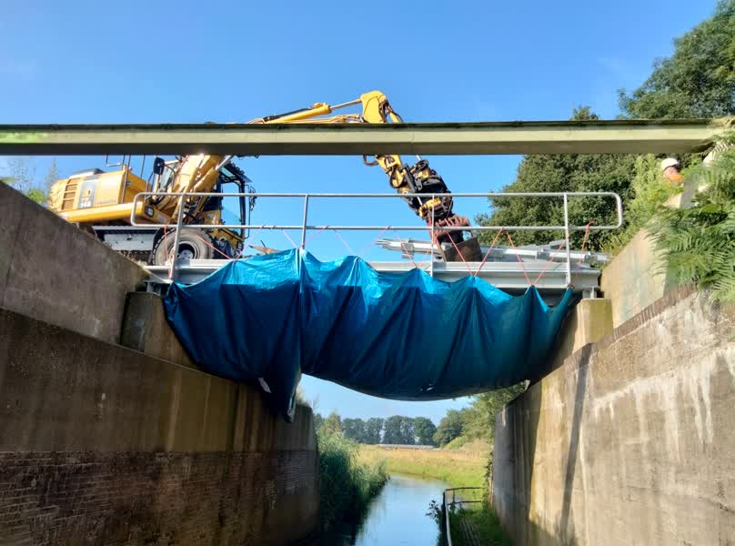 ProRail heeft de afgelopen drie dagen gewerkt aan het brugdek over de Groote Molenbeek bij Tienray.