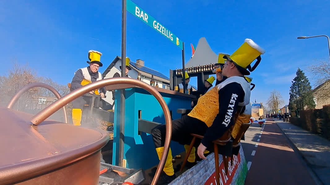 Zelfs Mario en Luigi trokken mee in de kleurrijke stoet: zij deelden superkrachten uit. De toeschouwers werden getrakteerd op een lopend buffet. En niet in de vorm van Zondagse soep die lang moet trekken. Buurtvereniging op d'n Berg bood in de optocht aan om het zwembad van hun buurman prins William te vullen.