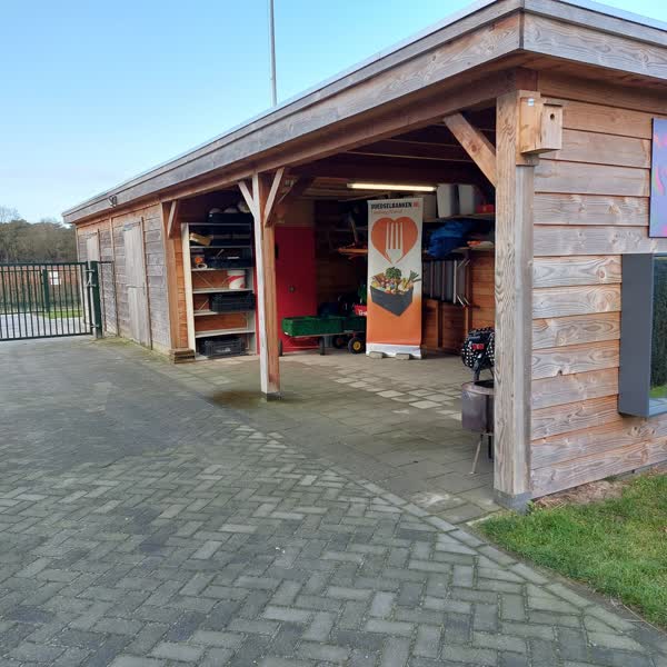 In de overdekte fietsenstalling bij Kindcentrum STip in Swolgen is een tijdelijk inzamelpunt voor de Voedselbank.