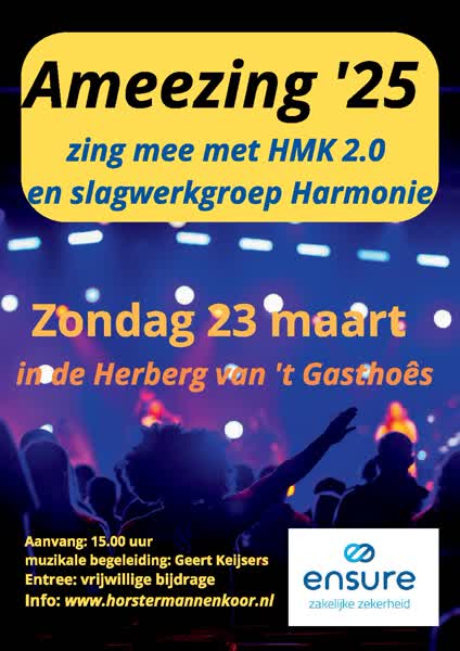 Op zondagmiddag 23 maart organiseert het Horster Mannenkoor een meezing-concert onder de titel Ameezing ’25 in de Herberg van ’t Gasthôes.