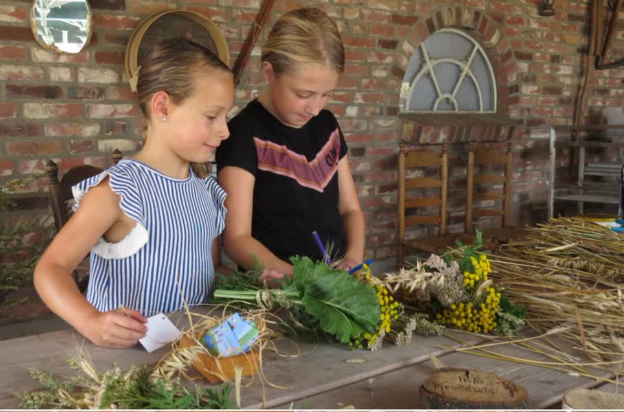 De kinderen mogen het boeketje helemaal naar eigen smaak samenstellen onder begeleiding van de vrijwilligers van het museum. En daarna natuurlijk thuis ophangen.