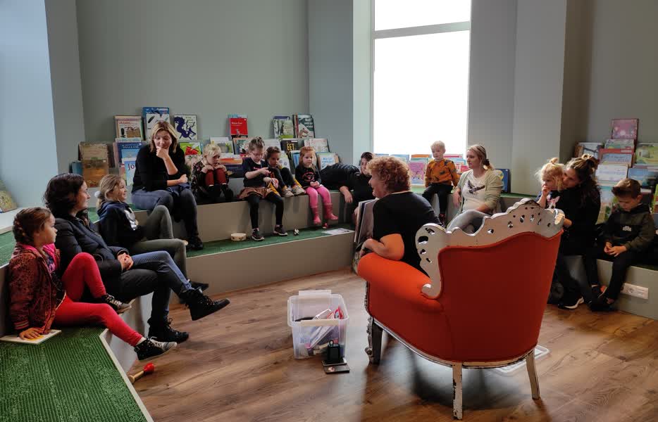 Na het voorlezen wordt er geknutseld, gezongen of lekker bewogen. Ouders kunnen intussen met elkaar in gesprek gaan.