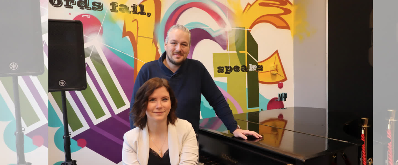 Chris Derikx is een nieuw gezicht binnen De Muzikantine, Bregje Deckers is al enkele jaren betrokken als projectmedewerker. Muzikantine is een stichting die zich inzet voor het ontwikkelen, verbinden en faciliteren van muzikanten in Horst aan de Maas.