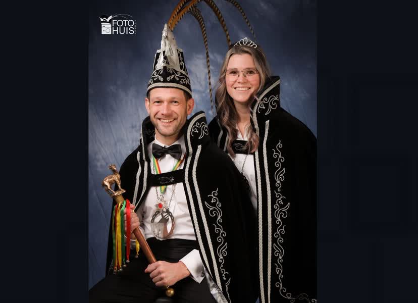 Prins Johan Camps zwaait in Tienray de scepter tijdens de komende carnavalsperiode. Samen met prinses Pauline werden zij zaterdagavond gepresenteerd als de 72e heersers van de Tienderse Geiten.