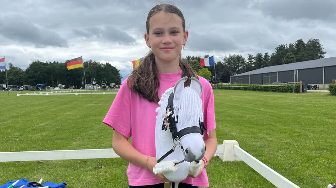 Naast het hobbyhorsen zit Fleur ook nog drie keer per week op een écht paard. Voor haar de perfecte combinatie. "Als je even niet bij de paarden kunt zijn, pak je je stokpaardje en ga je springen of gezellig trainen met vriendinnen." Het ziet er bijzonder uit, vindt ook Anke, de moeder van Fleur: "Mensen moeten er vaak even aan wennen. In het begin vond ik het er zelf ook grappig uitzien, maar ik doe het ze niet na."