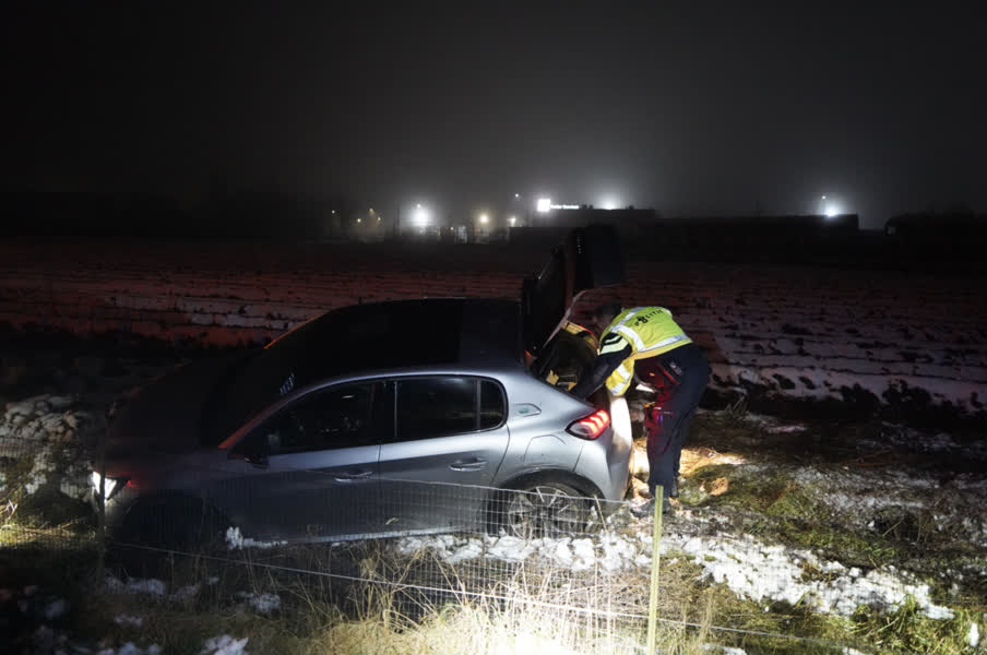 De auto reed door een hek en voorbijgangers waarschuwden de hulpdiensten. De bestuurder werd door ambulancepersoneel gecontroleerd en vervolgens door politie opgepakt.