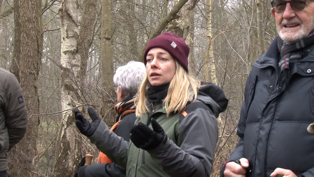 Dory Verberne is zondag deel van de excursie en omwonende van het gebied. “Er werd hier net een opmerking gemaakt door iemand die zei dat Staatsbosbeheer rigoureuzer te werk moet gaan als je een bepaald doel voor ogen hebt,” zegt Verberne. “Dat triggerde mij echt enorm. Ik vind namelijk dat er al enorm rigoureus te werk wordt gegaan.”