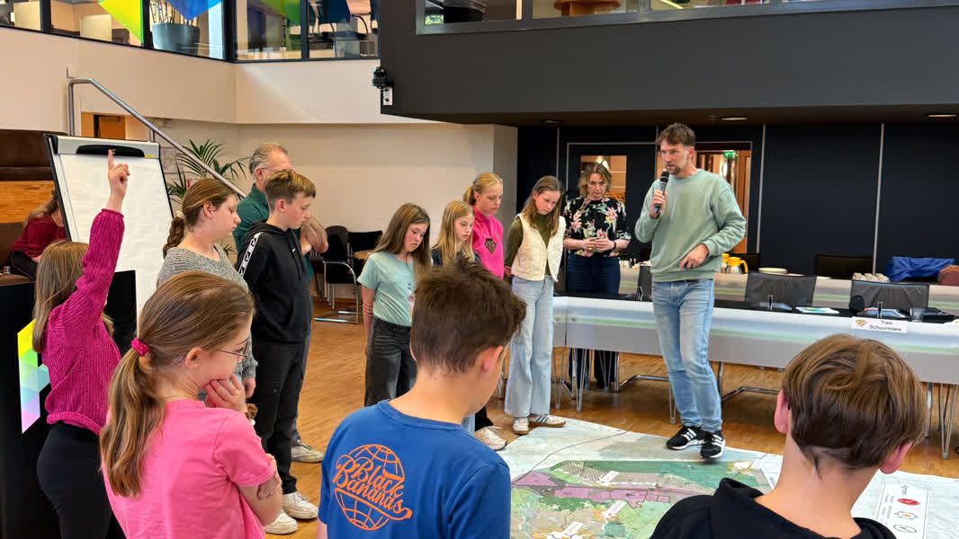 Na de rondleiding gingen de kinderen aan de slag met de omgevingsvisie van Horst aan de Maas. Vragen als waarom er op sommige plekken veel bos ligt, hoe je energie op kunt wekken met water en of hoogbouw bij het dorpsgevoel past kwamen voorbij.