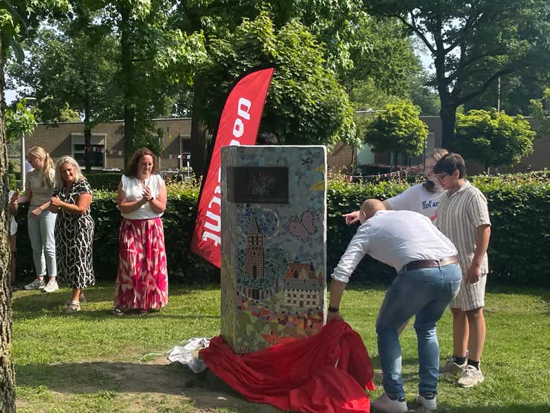 Bij 't Raayke in Tienray is vrijdagmiddag een nieuw kunstwerk onthuld. Het idee voor het kunstwerk ontstond in 2024 toen de allereerste steen van de dagbesteding werd gevonden.