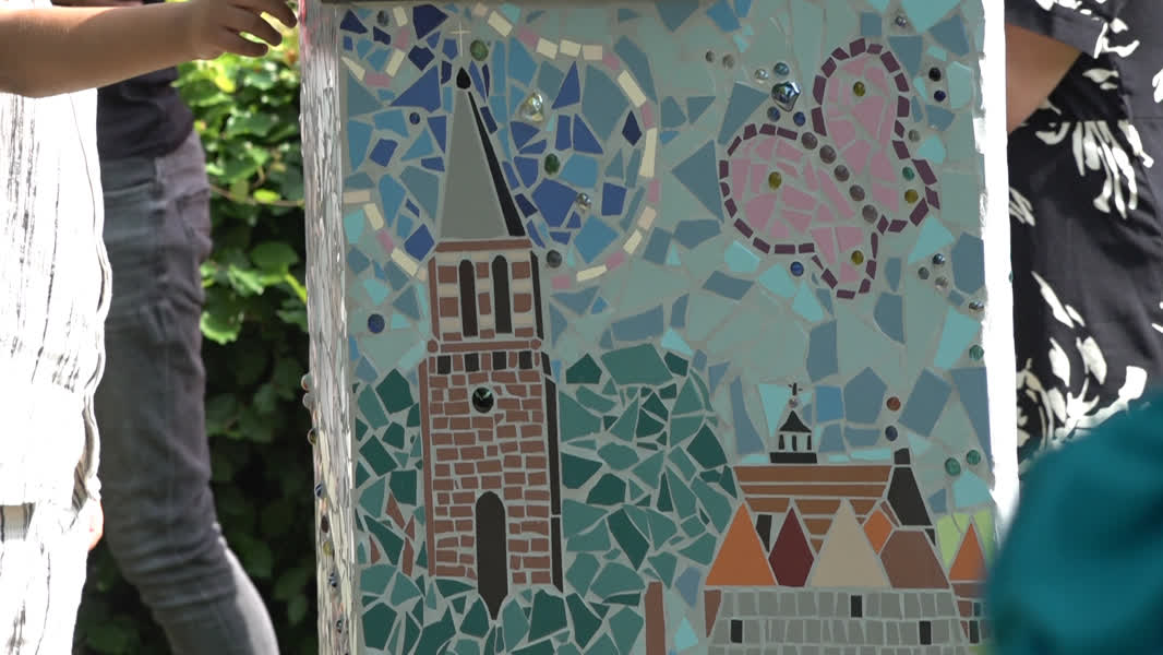 Het mozaïken kunstwerk Omroep Horst aan de Maas
