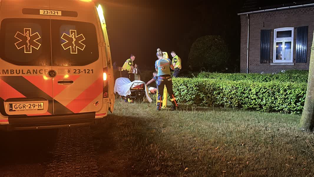 De man werd gestabiliseerd door ambulancepersoneel en is met onder meer een beenblessure naar het ziekenhuis gebracht. Zijn scooter werd bij omwonenden gestald.