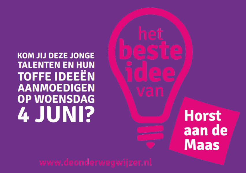 't Beste Idee van Horst aan de Maas start woensdag 4 juni om 15.30 uur. Aanmelden kan via info@deonderwegwijzer.nl