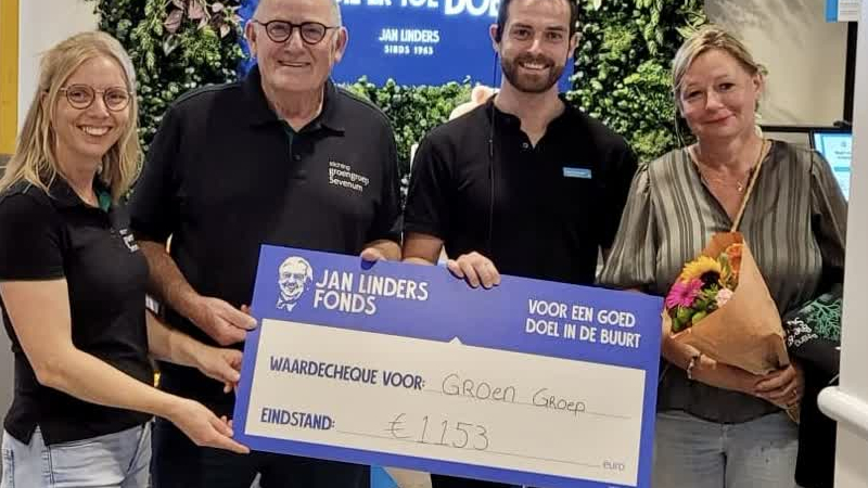 Het Jan Linders Fonds heeft een cheque ter waarde van 1.153 euro overhandigd aan Stichting Groengroe...