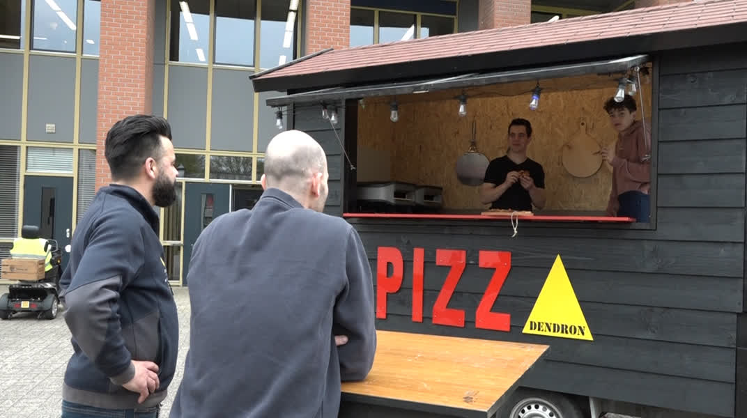 "Ze hebben voor het project een 8,5 gekregen", zegt hij. "Dus helemaal goedgekeurd. En de pizza's smaakten ook lekker. Dat is altijd mooi meegenomen", zegt hij met een knipoog. De twee heren willen nadat ze hun Dendron-diploma hebben, verder bij Bouwmensen, tegenover het Dendron College.