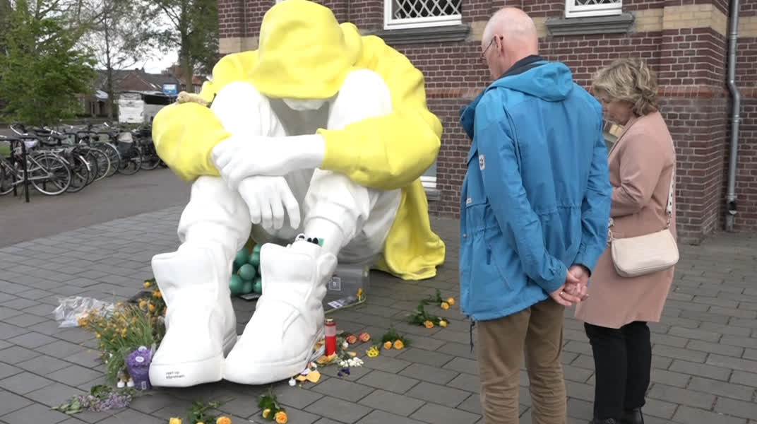De Wekkerradio overhandigt iedere zondag de Bloemenketting aan een inwoner uit Horst aan de Maas. Speciaal voor Stille Strijd legt Omroep Horst aan de Maas deze keer gele rozen voor het kunstwerk.