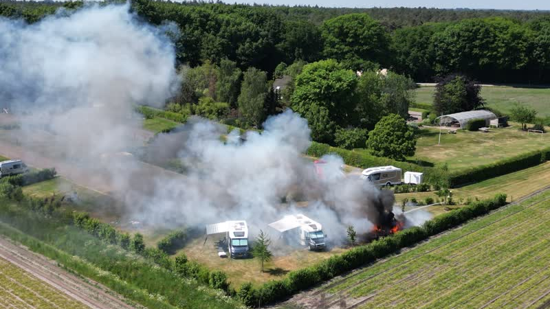 Op een camping aan de Bergsteeg in Meterik is woensdagmiddag een camper volledig uitgebrand. Voor zo...