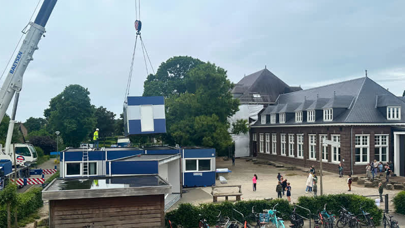 Bij basisschool Onder de Wieken in Meterik worden vandaag twee tijdelijke lokalen geplaatst. De plaa...