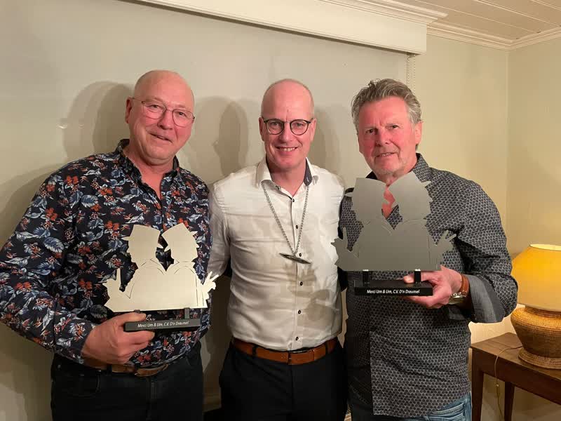 Het bekend Horster duo Um & Um is gestopt. Om hen voor deze jarenlange muzikale inzet te bedanken, ontving het duo een speciaal laatste cadeau van carnavalsvereniging D’n Dreumel.