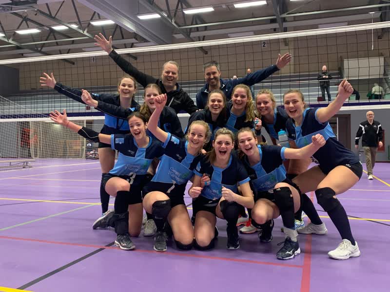 De hele eerste set had Set Up een voorsprong van 5-3, 10-7 en 15-11. Meerlo begon de set sterk en enthousiast. Er werd een goed spel gespeeld, de blokkering was sterk en er werden mooie punten gemaakt. Via een sterke service en een mindere passing kwam Skunk terug naar 15-15. Daarna ging het gelijk op en werd het 19-19 en uiteindelijk 23-20. De juiste keuzes werden gemaakt en de setjes van Kim kwamen dan ook goed bij de aanvalsters. De stand liep door naar 26-26 en 29-29. Alles werd van de grond gehaald en er werd gevochten voor elk punt. Uiteindelijk maakte Amy het af door een blok. Het werd 33-31.EnthousiasmeDe stand begon in de tweede set met 7-5 en 12-7. Uiteindelijk liep de het uit naar 12-13, 14-17 en 14-19. Het liep allemaal niet meer zoals de eerste set. Er werd een time out aangevraagd maar dit had geen resultaat. Het werd 15-22 en deze set werd met 17-25 verloren. Deze set heeft Set Up een paar mooie puntjes gemaakt, maar dat was niet genoeg. Door de set goed afgesloten te hebben gingen de dames vol enthousiasme door naar de volgende set.Goede keuzesHet enthousiasme werd in de derde set meegenomen en daardoor begon Meerlo de set goed. De standen liepen naar 7-7 en 9-7. Skunk vroeg een time out aan, maar Set Up bleef de voorsprong houden. Er werd wederom goed gespeeld en Rian heeft veel punten gemaakt met haar aanval. Dit mede door de goede keuzes van Lisanne en goede sets. 16-10 en op 18-10 vroeg Skunk nogmaals een time out aan. Set Up heeft zich hier goed herpakt en door ons doorzettingsvermogen heeft deze set overtuigend gewonnen met 25-12.WinstDe vierde set begon met 6-6 en 10-9 wat uiteindelijk 12-9. Skunk vroeg een time out aan en Meerlo liep verder uit naar 16-10. Door een mindere fase, waar het niet meer zo soepel liep, werd het 16-14 en uiteindelijk zelfs 17-19. Via een sterke service van Romee werden er veel punten gemaakt en ging de stand naar 22-20. Op 24-21 was er nog een time out voor Skunk. Wederom was Amy daar met een mooi tactisch geplaatste bal in het centrum en haalde Meerlo ook deze set binnen met 25-23.