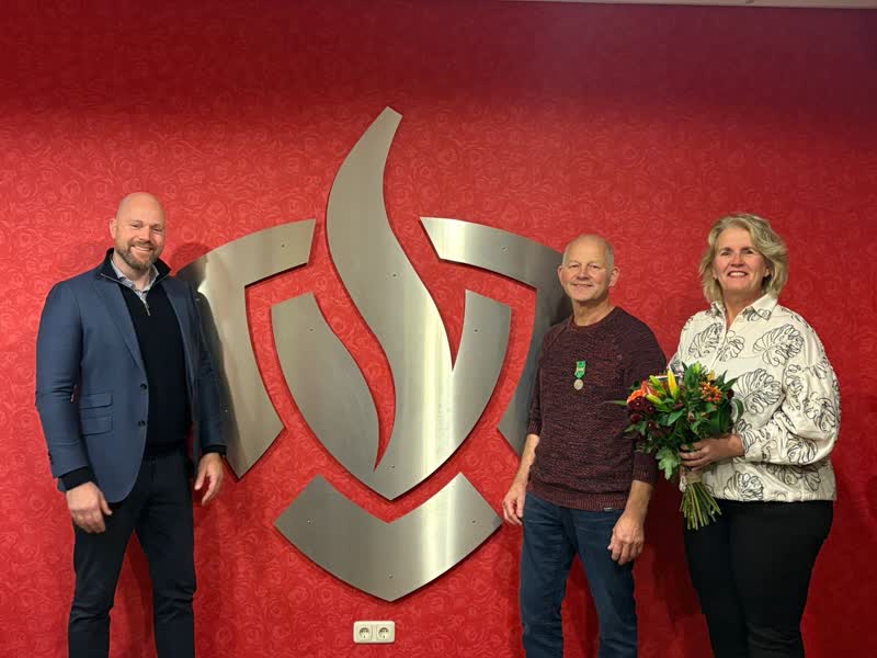 Bongers ontvangt de vrijwilligersmedaille als blijk van waardering voor zijn jarenlange inzet, betrokkenheid en toewijding aan de brandweer en de gemeenschap van Lottum.